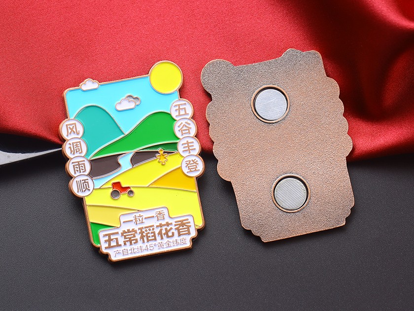【制(zhì)作(zuò)工藝】:沖壓 【上(shàng)色工藝】:烤漆 【電(diàn)鍍顔色】:紅古銅 【背面工藝】:砂底 【産品配件】:磁鐵(tiě)扣